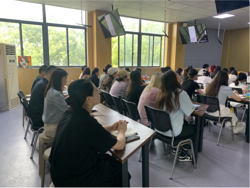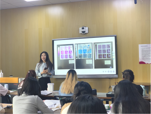 本网讯(通讯员 程夏静/文 李缜/图)“催弦拂柱与君饮,看朱成碧颜始红。”4月21日,在传媒艺术学院严可祎老师《构成设计》课堂上,她引用唐代诗人李白的诗词以及宋代韩元吉的诗词“昨夕饮君家,看朱忽成碧”,唤起学生丰富的想象以及对色彩的感知。