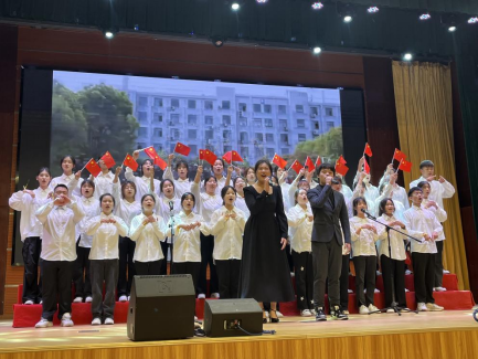 弦音振动,鼓乐吹笙,最后由大学生艺术团和音乐社共同演唱的歌曲《飞跃》呼唤师生不忘初心、砥砺前行,爱国荣校,共创辉煌。晚会在歌声中画上了圆满的句号。