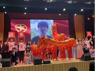 机电工程学院代表队的一曲合唱《星辰大海》青春洋溢、激情澎湃,充分彰显了机电学子对梦想、对未来的展望和执着追求。伴随着舞台上舞龙的升起,学院舞龙队的同学们向大家展示了百年后龙的传人续写新篇章的期冀,他们的逐梦之路也在这里继续扬帆起航。
