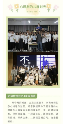“世界微笑日”前日,学院二级心理辅导站举办“你笑起来真好看”最美微笑线上征集活动,同学们踊跃投稿。经过重重筛选,学院将优秀作品做成推文,与师生一同分享。志愿服务的温暖笑容、喜获佳绩的振奋人心、排练过程的暖心瞬间、四世同堂的阖家欢乐,更有亲爱的宿管“妈妈”和辛劳的后勤阿姨……在一份份作品中,同学们用心分享自己身边的“最美微笑”。在大家温暖的文字与照片中灿烂的笑容里,幸福感跃然而上,传递给每一位读者。