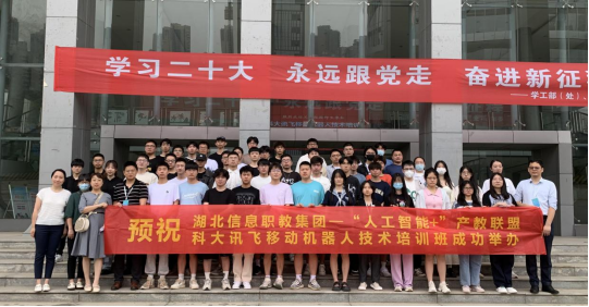 本网讯(通讯员 伍辉 朱珺/文 刘雪琴/图)5月19日至21日,“科大讯飞移动机器人技术培训”在我校举办。本次培训由科大讯飞(苏州)科技有限公司主办,我校电信工程学院、湖北省信息技术职教集团”人工智能+“产教联盟承办。来自湖南大学、长江大学、陕西国防工业职业技术学院、九江学院等高校的六十余名师生参加了此次培训。开班仪式上讯飞企业华中区咨询总监丁晓磊、电信工程学院副院长朱珺致辞,分别介绍了讯飞在移动机器人领域的研究成果、对参训师生表示了热烈欢迎。
