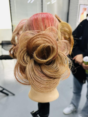 2022级人物形象设计专业学生程亚林作为“领学计划”第一期开讲人,以《虽是毫毛技艺,却是顶上功夫》为题,分享自己参加职业技能大赛的备赛经验、心路历程,并现场进行盘发技能展示。程亚林曾参加湖北省乡村振兴、湖北省工匠杯等各类职业技能大赛,在2020年湖北省工匠杯大赛中获“男士烫发组冠军”,在今年第一届湖北省职业技能大赛中荣获第二名的好成绩。程亚林的分享引发同学们的阵阵掌声,在现场技能展示环节,她用头发做出一朵精美的玫瑰花造型,技艺精巧、灵动逼真,令在场的同学们惊叹不已。
