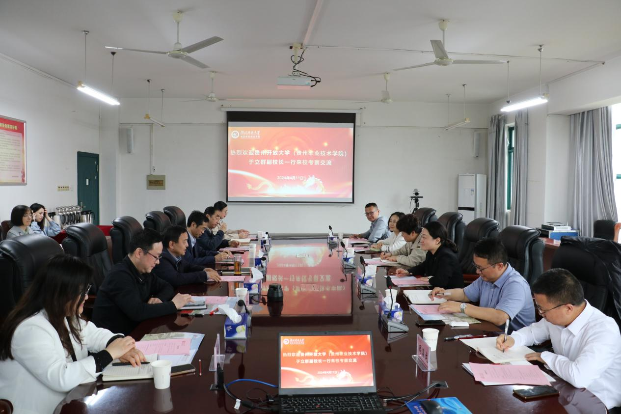 于立群对学校的热情接待表达了感谢,对我校近年来的办学成果和发展给予了高度评价。她从学校发展历程、办学情况、专业建设等方面介绍了贵州开放大学(贵州职业技术学院)的基本情况。她表示,希望未来两校能加强互动交流和深度合作。