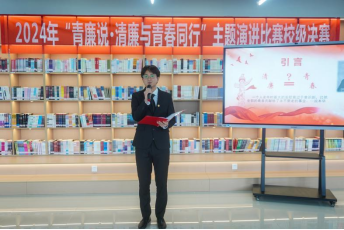 本网讯(通讯员 肖莉山 刘美钰/文 张文静/图)为激发学生笃学尚行的学习意志,夯实清正廉洁的思想根基,涵养风清气正的“清廉校园”政治生态,6月4日中午,校团委在图书馆4楼视听阅读室组织开展了“青廉说·清廉与青春同行”演讲活动。纪委、监察专员办纪检监察室主任周凯,校团委书记白杰,各学院分团委书记参加活动并担任评委,100余名同学到场观看并参与活动。