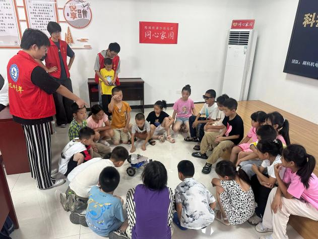 本网讯(通讯员 毛大名 文/图)为积极响应大学生暑期“三下乡”社会实践活动的号召,服务少年儿童健康成长,7月19日,机电工程学院匠心志愿服务队6名志愿者在指导老师毛大名的带领下,走进湖北省襄阳市枣阳市南城街道沙店社区“暑假学堂”爱心托管班开展为期两周的关爱留守儿童支教活动。通过一系列形式多样、内容丰富的课程和多样化的教学方法,拓宽了孩子们的视野,助力提升孩子们的综合素质,为培养社会主义合格的建设者和可靠的接班人打下了深厚基础。