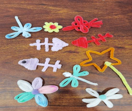 在手工课上,志愿者利用事先准备的课件,为孩子们讲解如何用扭扭棒做出精美的小饰品。随后,为孩子们分发了扭扭棒等工具,带领孩子们学习制作。该课程不仅能让孩子们发挥想象力和创造力,还让他们在实际操作中体会到了手工制作的乐趣。