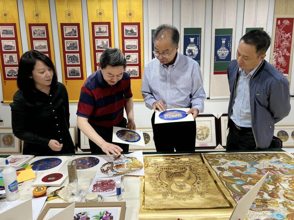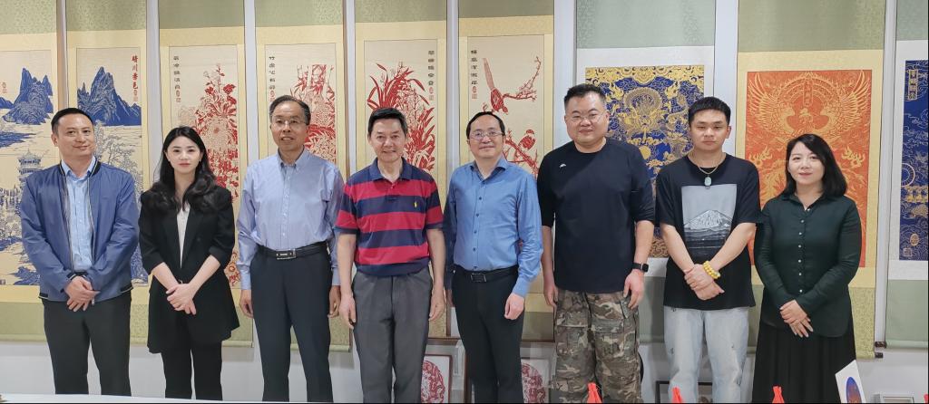 在交流会上,双方围绕非遗文化传承、文旅产业市场现状及非遗人才培养展开深度探讨。学校美育教研室负责人介绍了学校在非遗保护与传承中的实践成果,并在“打造非遗教学团队”“剪纸技艺的跨界融合”“非遗文化市场化”等方面提出校企合作新思路。