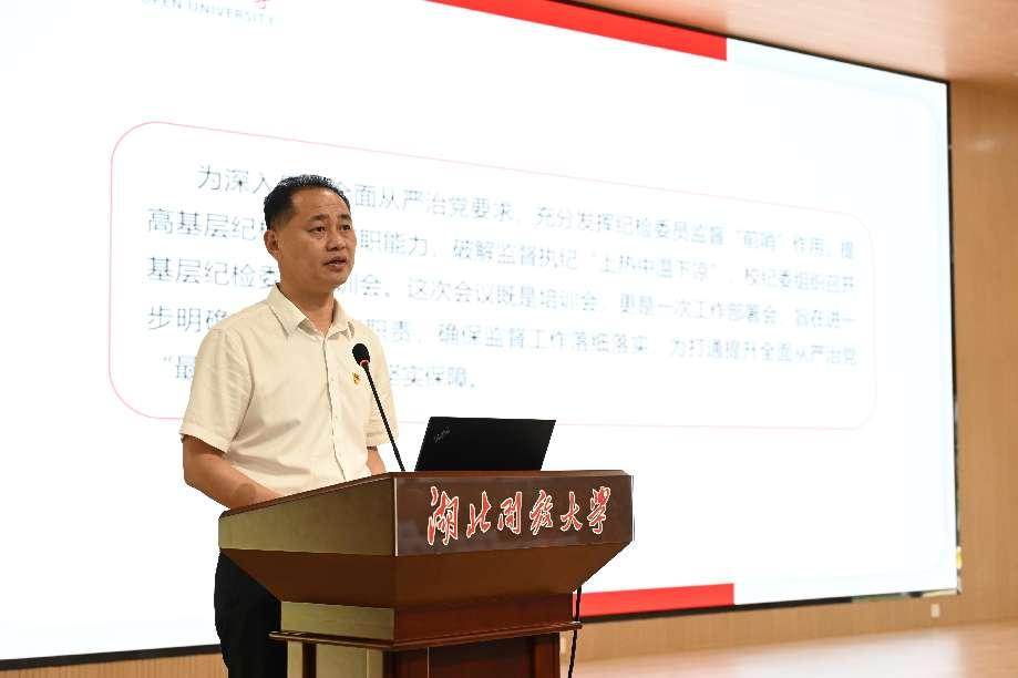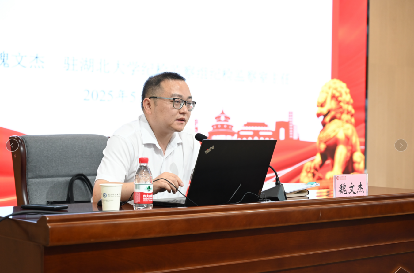 此次培训邀请湖北省纪委监委驻湖北大学纪检监察组、湖北大学纪委纪检监察室主任魏文杰作专题辅导报告。他以“锲而不舍落实中央八项规定精神,持续深化纠治‘四风’”为题,结合丰富的案例和详实的数据,分析了党的十八大以来反腐败斗争的形势,深刻阐述了落实中央八项规定精神的重要性和紧迫性;解读了中央八项规定精神的内涵和要求、违反中央八项规定的主要问题类型和适用党纪条规;以违规吃喝问题案例为切入口,讲解了如何查办违反“中央八项规定精神”案件,为我校基层纪检委员进一步做好工作提供了有力的理论指导和实践借鉴。