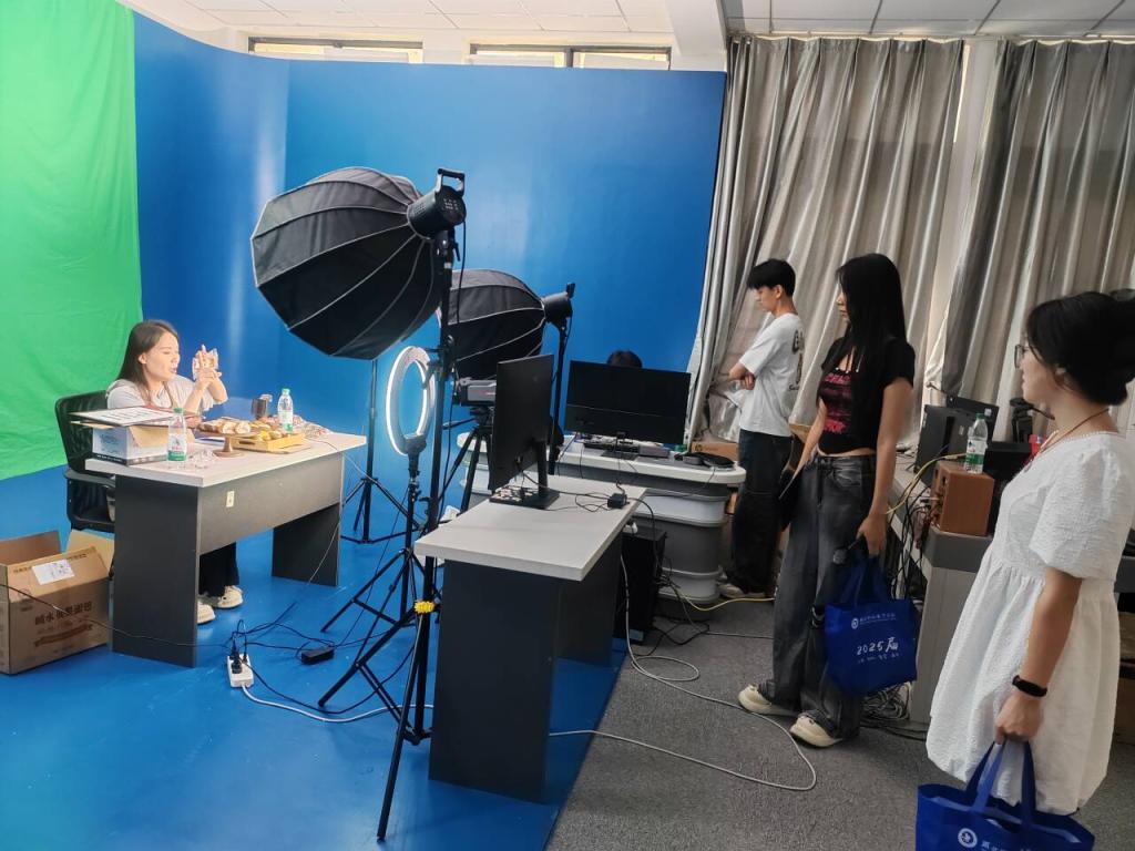 在实践教学场景中,学生沉浸式参与电商直播流程。从场景搭建、灯光调试到直播互动,将课堂理论知识融入实操环节,助力学生掌握新媒体运营技能,为未来职业发展积累实践经验。