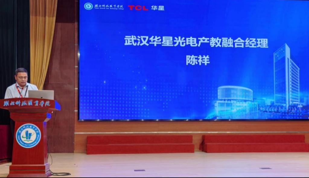 教师代表夏春芬介绍了工业视觉系统运维微专业的具体实施方案。企业代表马玲介绍了武汉华星光电与人工智能学院工业视觉系统运维微专业的培养模式与优势。22级云计算一班郑科作为优秀学生代表分享了自己在华星光电面板精密修复技术岗位的实践经历。
