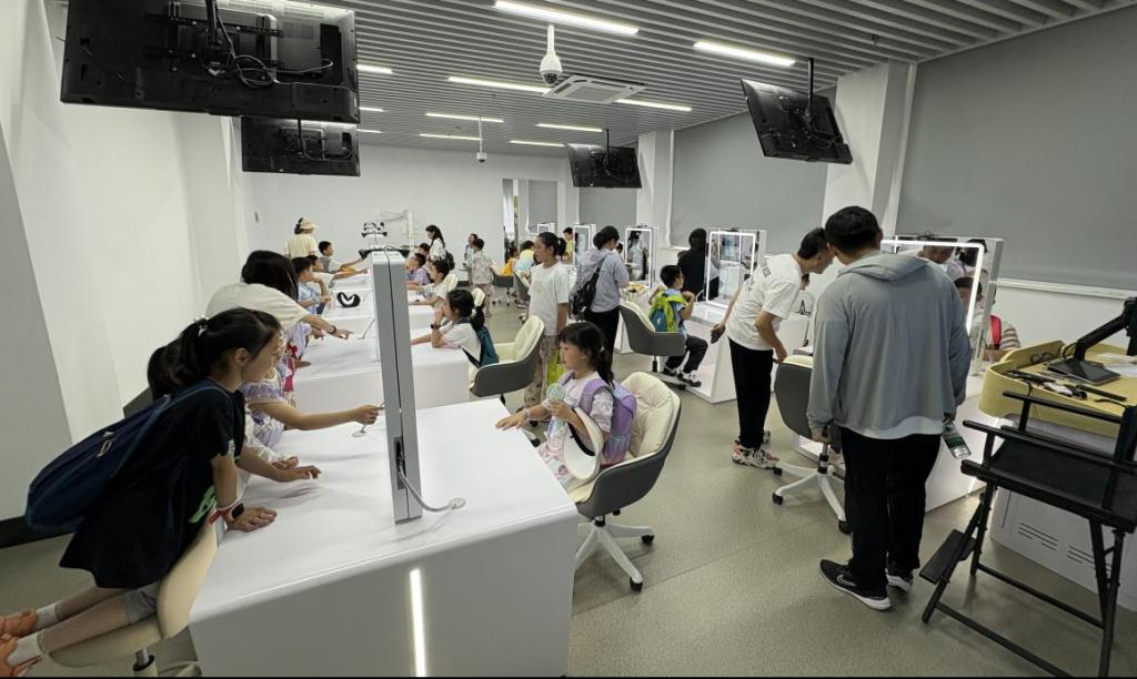 在学院新落成的非遗数字展厅内,我校老师欧亚梅为青少年开启了一场跨越时空的文化之旅。裸眼3D技术复原的湖北省博物馆镇馆之宝“曾侯乙编钟”数字化形象,结合动态历史场景再现,让文物“活”在眼前;AI数字人、省级剪纸大师沈松柏的虚拟形象与青少年实时互动,解析“镂空艺术”的千年技艺密码。活动特别设置AI形象设计体验环节,学生们通过智能系统生成个性化非遗主题数字形象,在科技互动中深化对中华传统文化的认同。