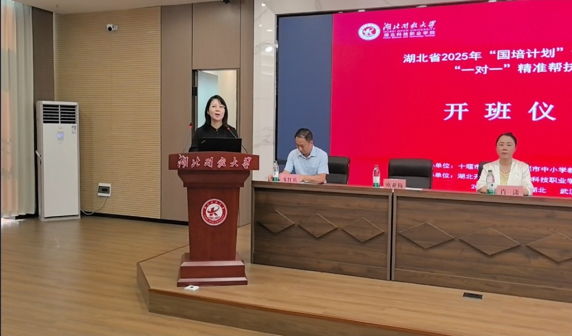 肖潇代表学校致欢迎辞。她表示,教师是教育发展的核心力量,也是推动区域教育高质量发展的关键所在。此次“国培计划”既是学习的机会,也是共同成长的平台。她希望学员们以高度的责任感对待培训,端正学习态度,学以致用,为基层教育注入新的活力。