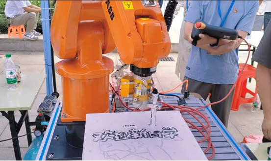 同时,为展示学院的学科特色与科研实力,激发新生对专业学习的兴趣与热情,迎新现场特别设置了机电科创展示区。3D打印、机械臂等设备吸引了众多新生的目光,机械臂灵活地完成各种复杂动作,3D打印机精准地打印出精美书签,廉洁纽扣等,为新生上了生动的廉洁第一课,激励他们在大学的征程中努力学习,追求卓越。