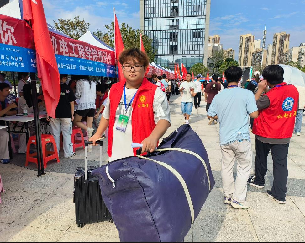 迎新当日,由学长学姐共同组成的百人志愿团队,穿梭于校门、报到点、宿舍之间,为新生提供精准引导、手续办理、行李搬运等全流程服务。他们以热情和汗水诠释机电学子的担当,成为新生大学生涯中第一道温暖而可靠的风景。