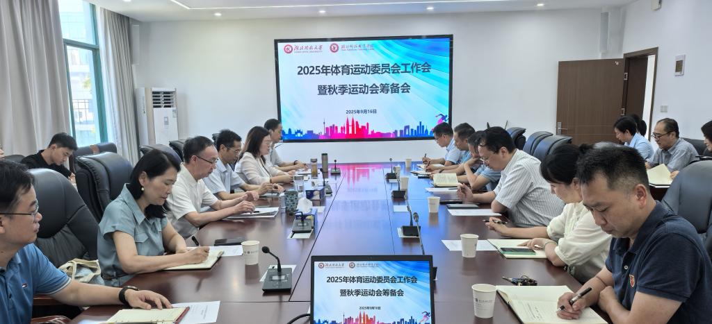 本网讯(通讯员 曾倩 文/图)9月16日上午,学校召开2025年体育运动委员会工作会暨秋季运动会筹备会,副校长夏学文、党委常委李宜兵出席会议,校体育运动委员会成员、2025年秋季运动会组委会成员参加会议。公共课教学部主任主持会议。