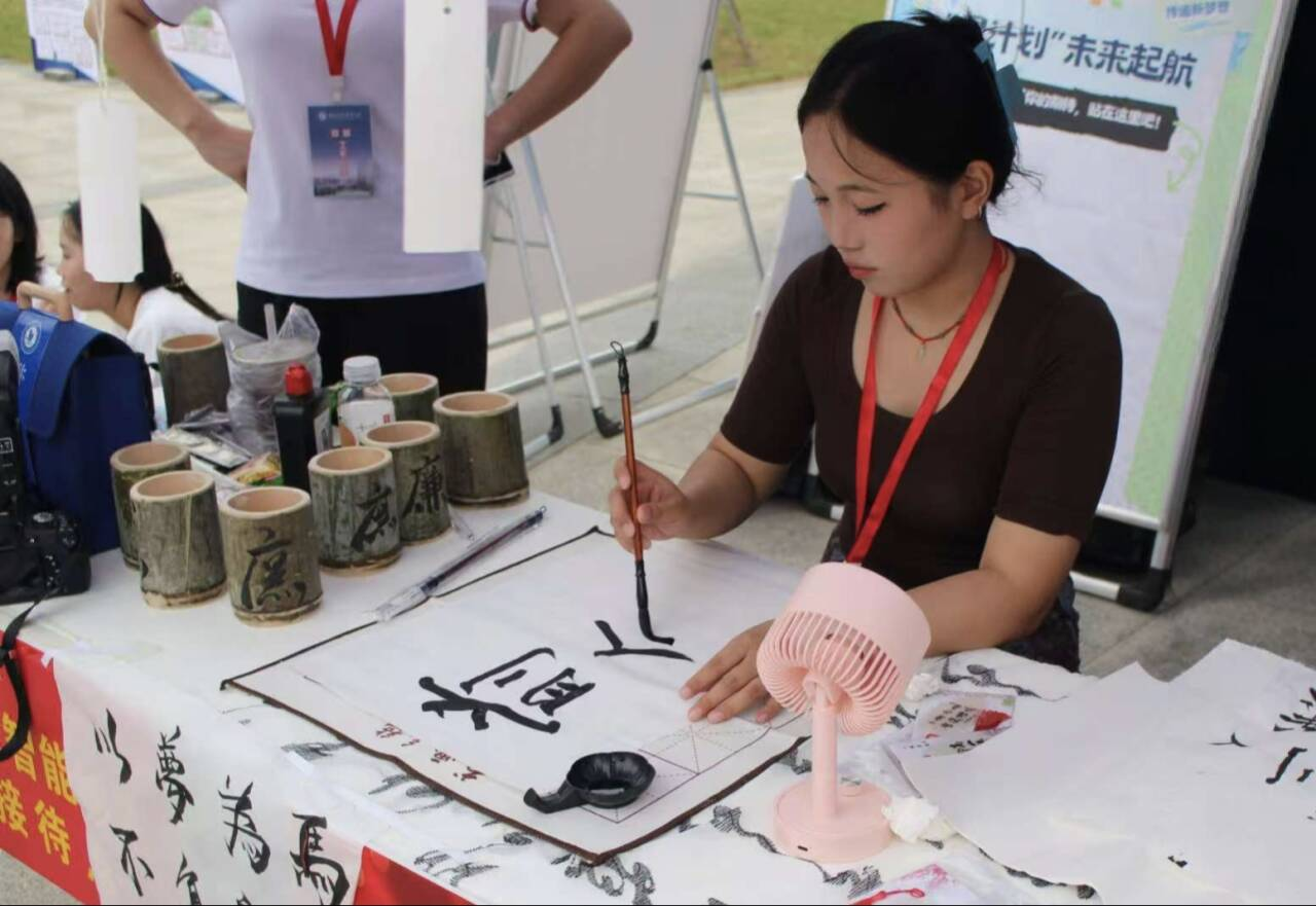 以廉修身,涵养品格。迎新点旁,“廉韵润初心,清风沐校园”主题活动同步开展。新生们在一幅幅廉洁文化作品中感受廉洁价值意蕴,并积极参与知识问答、书法体验等环节。本活动不仅在潜移默化中引导全校师生树立“崇廉尚德、知行合一”的价值观,也让新生牢记在今后的学习与生活中,要以清正之心守护青春底色。