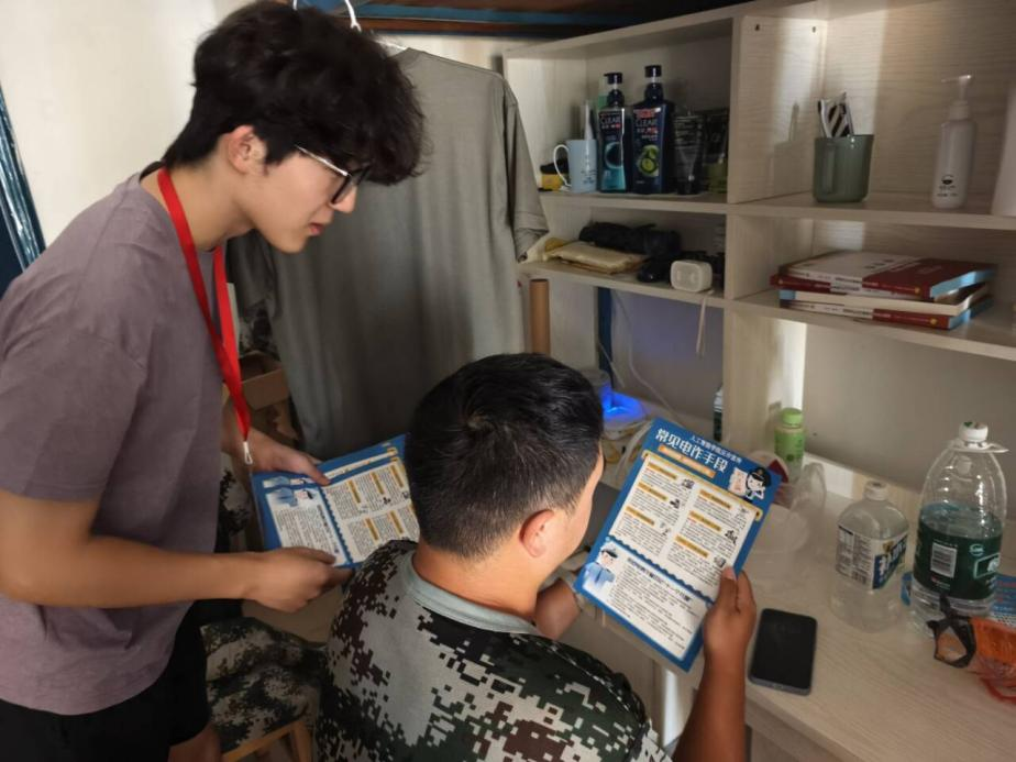 以行护“新”,筑牢防线。为筑牢新生安全防线,学院“与光同行”反诈宣讲团深入所有新生寝室,发放反诈宣传手册,讲解安全和反诈知识,提醒同学们守牢安全底线,增强防范意识,谨防上门推销和电信网络诈骗等常见骗局,做到“不听、不信、不转账”,守护好人身财产安全。