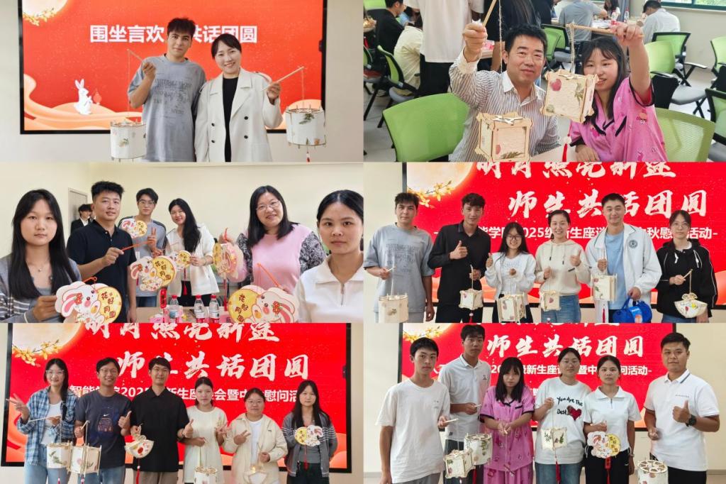 在手工灯笼制作环节,学院领导与新生分组协作,裁剪、粘贴、组装……其间,老师们细致询问同学们的入学适应情况,畅谈大学生活、兴趣爱好与未来规划。欢声笑语中,一盏盏象征着团圆的灯笼逐渐成形,师生之间的距离也越来越近。2025级新生龚喜捧着自己制作的灯笼感慨:“虽然是第一次离家过中秋,但是能和老师同学们一起做灯笼、聊聊天,让我觉得这个节日格外温暖。”