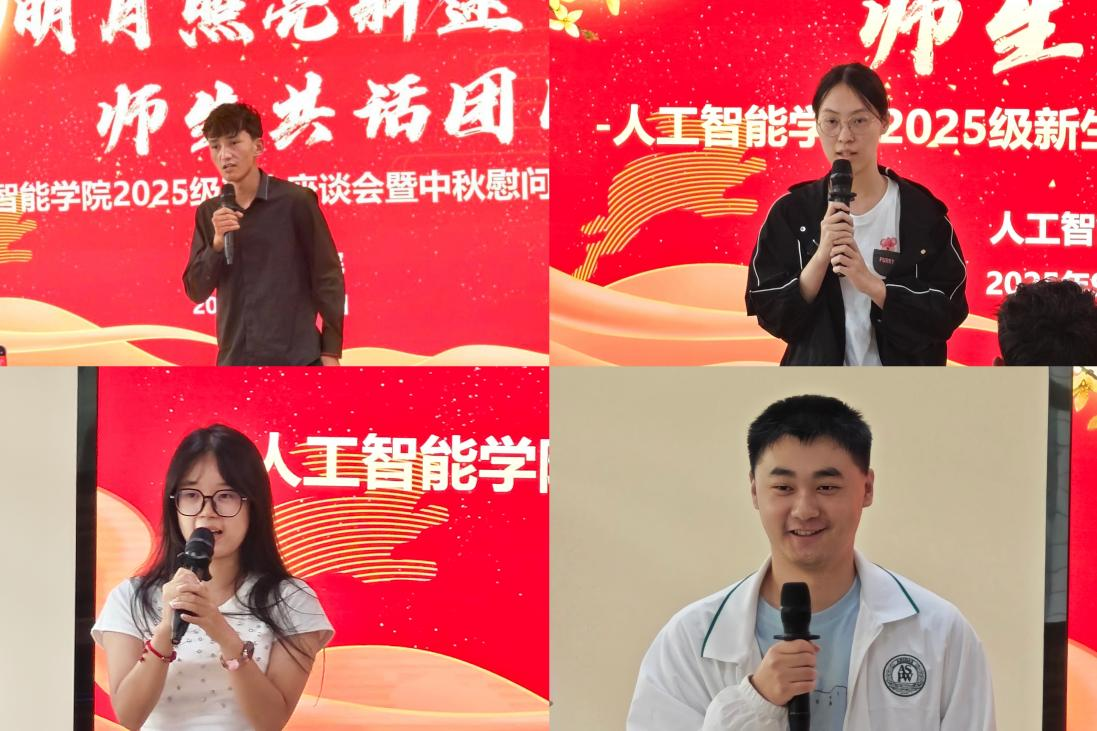 本网讯(通讯员:刘雪琴 文/图)为弘扬中华优秀传统文化,增进师生情感交流,帮助2025级新生更快融入校园生活,在中秋佳节来临之际,人工智能学院于9月26日在5209团辅活动室举办“明月照亮新途,师生共话团圆”2025级新生座谈会暨中秋慰问活动。学院党政领导班子、三办负责人、全体辅导员及来自新疆、云南、贵州等地区的15名新生代表欢聚一堂,共话团圆、共叙未来。