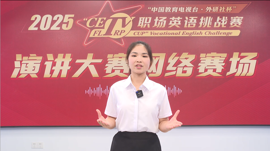 本次大赛以“Future Industry, Future Me(未来的产业,未来的我)”为主题,我校选手立足职业教育实际,以创新视角讲述中国职教人“敢为天下先”的开拓精神与青年一代“勇立潮头”的进取信念,展现出扎实的语言功底与出色的演讲表达能力,获得评委的高度认可。决赛采用限时演讲,选手需围绕赛题“Is technology making us more connected or more isolated?(科技让人们更紧密连接还是更孤立隔阂)”在两小时内完成3分钟的演讲视频录制。在教师的悉心指导下,参赛选手结合自身实践,生动阐释技术在不同场景中被赋予的多元意义,表达了对科技发展的深刻理解与美好期待。演讲内容既体现职教学子以技能驾驭技术的专业底气,也彰显出与时代同频共振、以奋斗书写职业理想的青春担当。