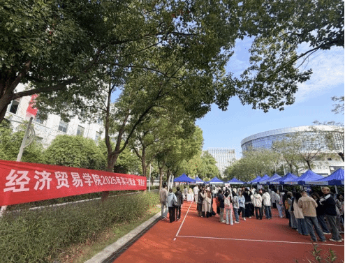 本网讯(通讯员 肖莉山 文/图)为深化产教融合,搭建校企人才对接平台,助力学生高质量就业。10月24日上午,经济贸易学院在三号楼运动场举办了2025年实习就业“双选会”。本次活动联动多家优质企业,为2023级学生提供实习就业岗位,覆盖金融、科技、财税等多个领域,助力学生职业发展启航。参会企业涵盖金融机构(如湖北银行、招商银行信用卡中心等)、科技公司(万潮科技、迪科数金、银雁科技有限公司等)及财税服务机构(一通财税集团、正宇华盛投资有限公司等),提供的岗位类型与学生专业高度匹配,为学生提供多元化职业选择。