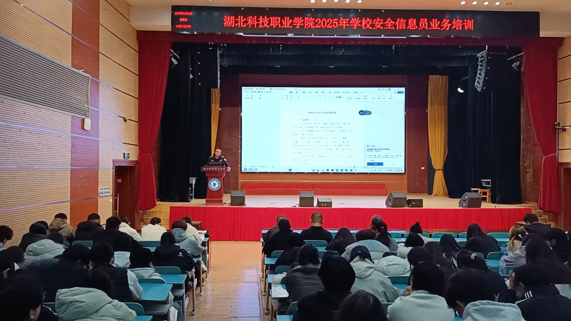 本网讯(通讯员 马忠 文/图)为进一步加强校园安全管理,提高安全信息员的业务能力,11月20日下午,学校组织开展了安全信息员业务培训活动,邀请武汉市公安局政保支队陶涛警官作专题讲座,各部门维稳员、各班级安全信息员和全体保卫干部300余人参加培训。