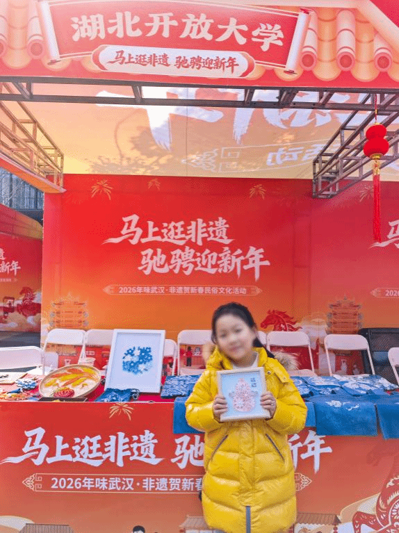 本网讯(通讯员 张静 丁丰/文 闵珏 周玉媛/图)为深入传承中华优秀传统文化,助力非遗活态传播,2月7日至8日,我校受邀参加由武汉市文化和旅游局、江岸区人民政府在武汉市江岸区咸安坊联合主办的“马上逛非遗 驰骋迎新年”2026年味武汉・非遗贺新春民俗文化活动。此次活动汇聚武汉市14个区及武汉城市圈的非遗项目,通过市集展销、技艺展演、互动体验等形式,为市民打造了一场沉浸式的传统文化盛宴。