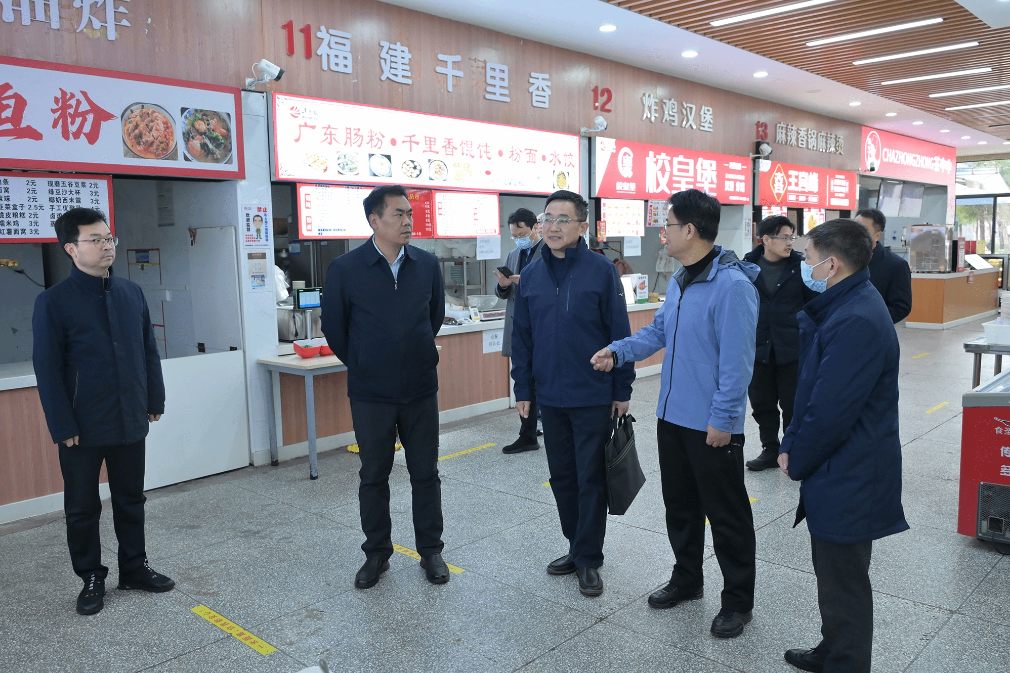在智慧教室,询问课程衔接与教学进度安排;在图书馆,询问学生的学习体验、对学校管理的意见;在食堂,查验食材溯源台账、后厨卫生环境及“明厨亮灶”监控系统运行;在学生宿舍,检查消防设施维护,随机抽查宿舍管理员应急响应流程。同时,详细了解了“开学第一课”主题教育、学生资助、校园周边环境治理等工作推进情况,并就如何进一步做好开学工作提出指导意见。