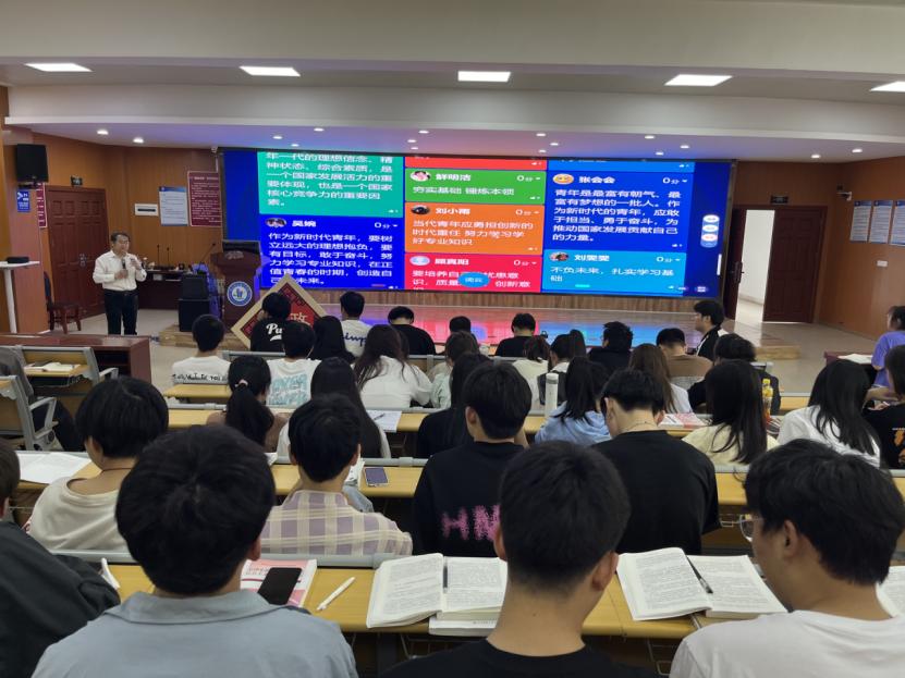 在“校长我想对您说”互动环节,学生们踊跃发言。莫连枫、赵焕文、吴梦洁等同学,向校长提出了自己在大学阶段有关学习和未来求职规划等方面的困惑,钟毓宁认真耐心地逐一解答,并表示自己十分看好我校学生,给予学生莫大的鼓舞!现场八十余名学生纷纷通过线上学习平台参与了课堂感悟留言活动,言语真挚、感悟真切,满怀希望。活动结束,课堂上响起了雷鸣般的掌声,同学们意犹未尽,感念本堂思政课对自己的触动与启发。