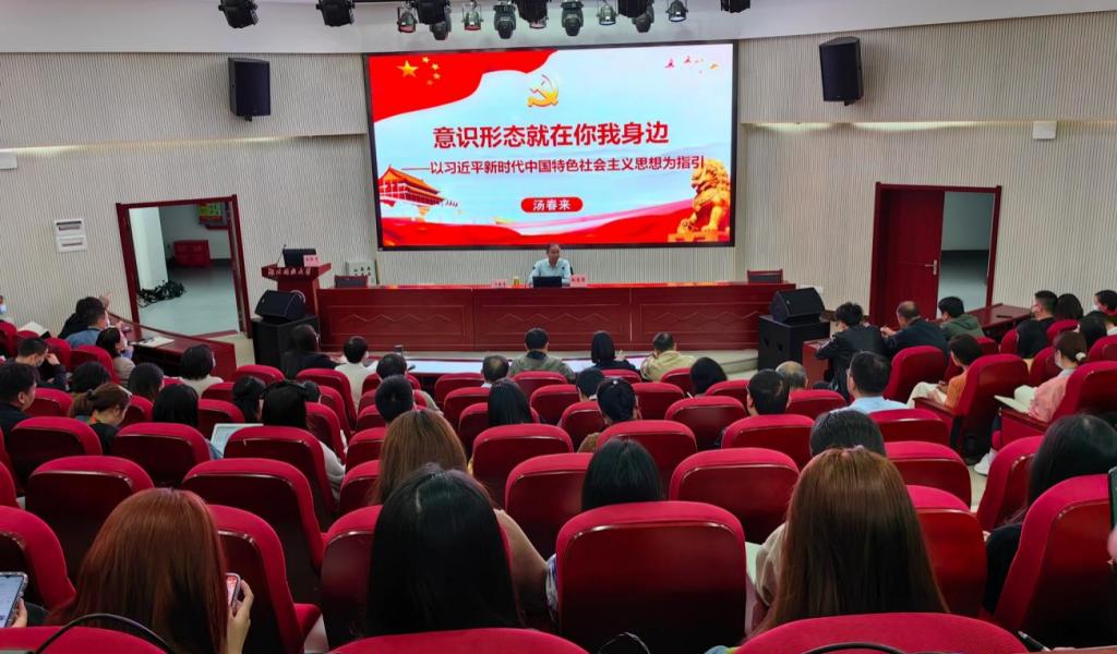 汤春来以“意识形态就在你我身边”为主题,以意识形态的概念内涵开场,从地位与作用、使命与任务、原则与要求、阵地与战场四个维度深刻阐明了新时代意识形态工作关乎旗帜、关乎道路、关乎国家政治安全,是为国家立心、为民族立魂的极端重要的工作。他紧密结合时事,以生动鲜活的案例,深刻阐述了面对意识形态领域的尖锐斗争,没有任何妥协、退让的余地,要敢于亮剑,敢于斗争,必须运用习近平新时代中国特色社会主义思想的世界观和方法论来指导高校意识形态各项工作。