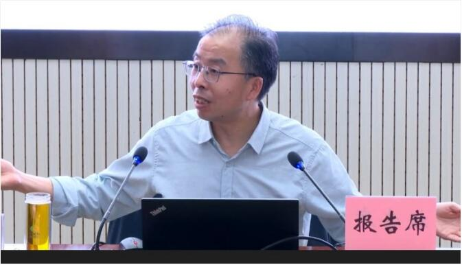 本网讯(通讯员 龚灿/文 曾倩/图)5月6日下午,校党委常委、副校长汤春来在鲁巷校区学术报告厅,讲授了一堂别开生面的意识形态教育专题思政课和学习贯彻习近平新时代中国特色社会主义思想主题教育党课,湖北开放大学体系的学生、职院传媒艺术学院的学生代表以及教务处、人事处、外事处、教师工作部、基建处、导学中心、开放教育学院、培训学院、社区教育学院、终身教育研究院、学分银行管理中心、教育技术中心等部门的党员教师,马克思主义学院全体思政课教师通过线上线下同步参加了此次思政课。