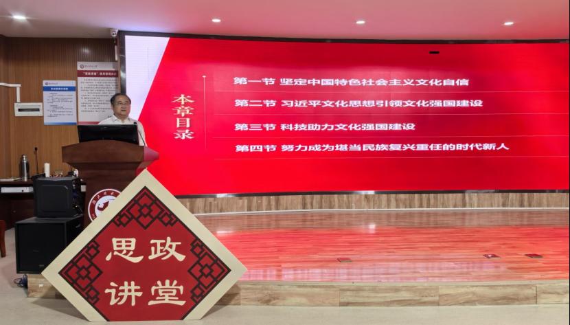 课程紧扣党的二十届三中全会精神,从坚定文化自信、贯彻习近平文化思想、推动科技与文化深度融合、培育时代新人四个维度,系统阐释了新时代文化强国建设的核心要义与实践路径。他从历史纵深切入,以中华文明五千年璀璨成果为引,结合敦煌壁画的千年韵味、故宫红墙的文化肌理,深入阐释“两个结合”的理论精髓,将马克思主义基本原理与传统文化精髓的结合演绎得精辟入理。钟毓宁指出文化自信是民族复兴的精神支柱,必须从中华五千年文明中汲取养分,坚持马克思主义指导地位,推动“两个结合”落地生根。