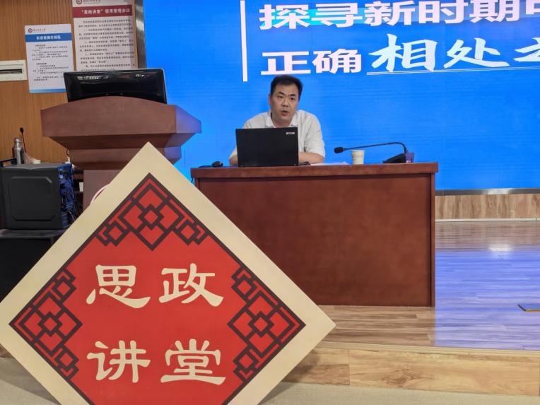 本网讯(通讯员 谢欣/文 曾倩/图)4月30日下午,校党委常委、副校长周得力以“探寻新时期中美正确相处之道”为主题,为工商管理学院2024级市场营销专业的同学们带来了一堂精彩生动、深入浅出的专题思政课。