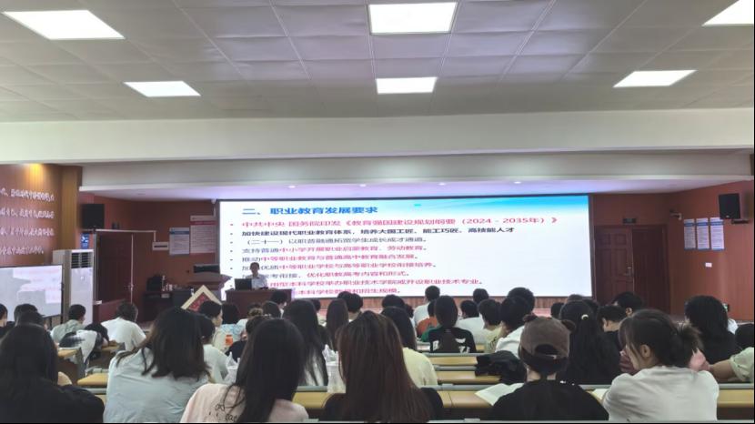 夏学文以中共中央、国务院印发的《教育强国建设规划纲要(2024—2035年)》为重点内容,解读《纲要》中对职业教育的发展要求,立足现实分析职业教育的未来发展,聚焦职业教育与国家战略的联动,从职业教育发展要求、终身教育发展要求、我们何为这几个维度展开,为高职学子锚定技能报国方向。