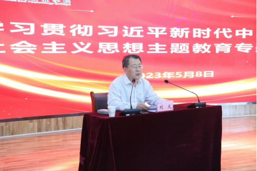 本网讯(通讯员 肖凌瑶/文 李贺刚/图)5月8日下午,党委书记刘义以“领导干部要带头做到‘两个维护’”为题,在思政大讲堂讲授专题党课,省委第十四巡回指导组组长王兆民等莅临指导,全体中层领导干部、党支部书记、教师代表100余人参加了学习。