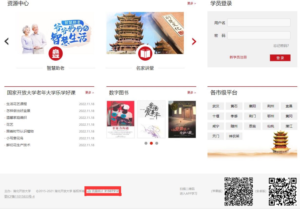 创新举措念好“整改经”。为进一步落实湖北省政府办公厅《关于进一步加强老年教育工作的意见》)(鄂政办发〔2018〕45号)关于“以湖北社区教育网为依托,形成涵盖省、市、县三级老年教育在线学习平台和‘空中课堂’,营造‘处处可学、时时能学、人人皆学’的老年教育氛围”要求,学院建设好维护好优化好这一社区教育数字化平台,汇集海量资源,免费向所有学习者开放,截止目前点击量已过3000万,以全国第14名的综合优势荣登“2022年度全国终身学习平台排行榜”,获得业界和社会的高度认可。